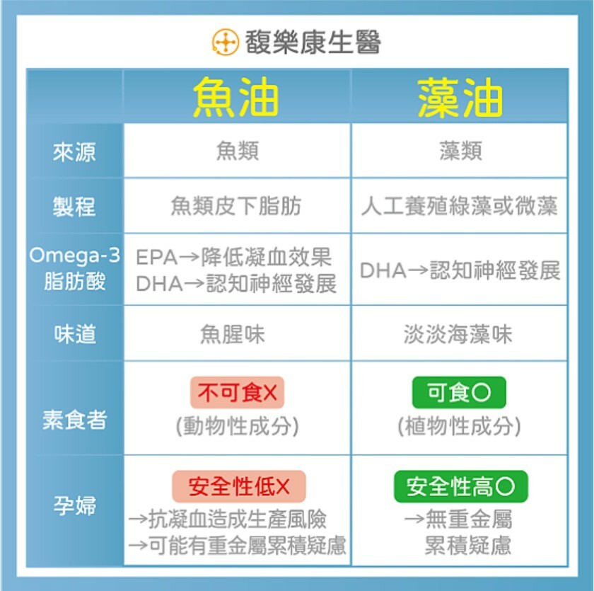 比較魚油藻油含的DHA